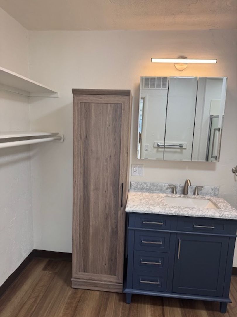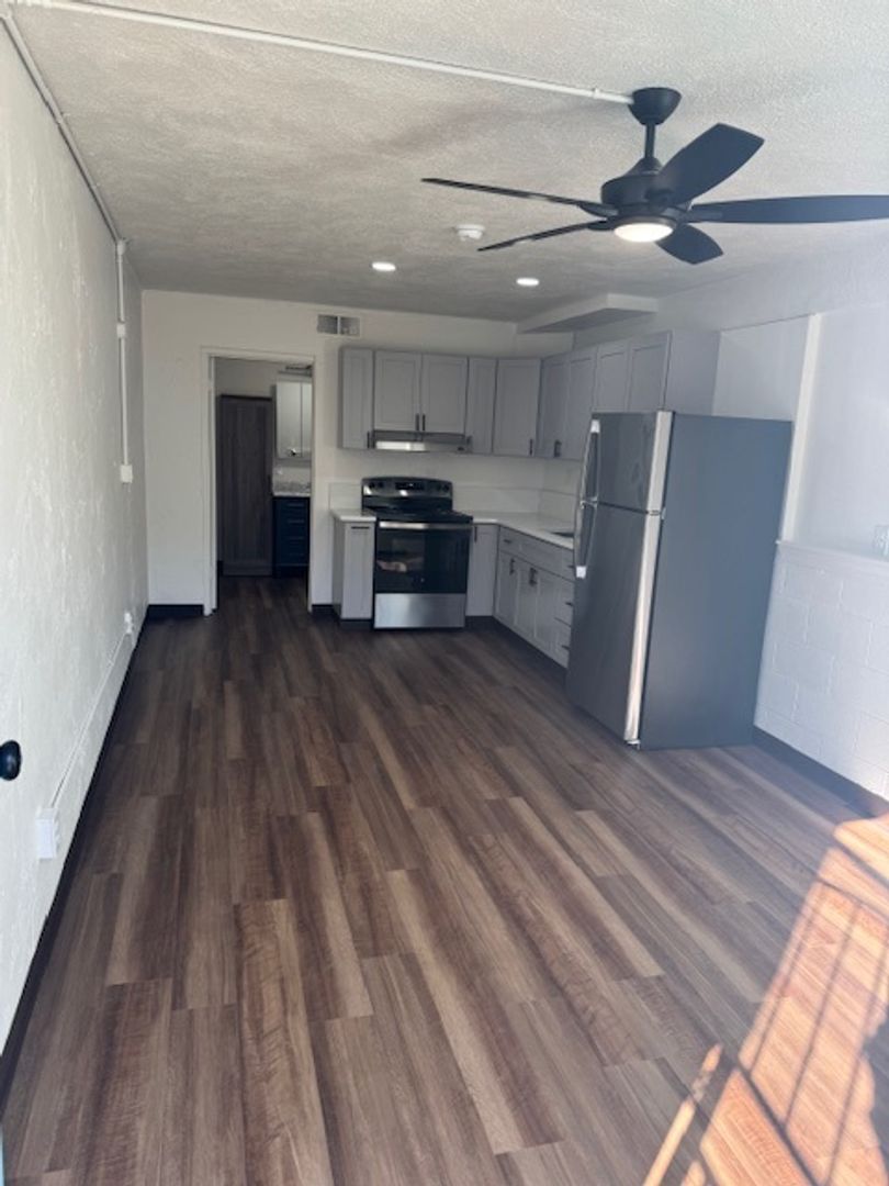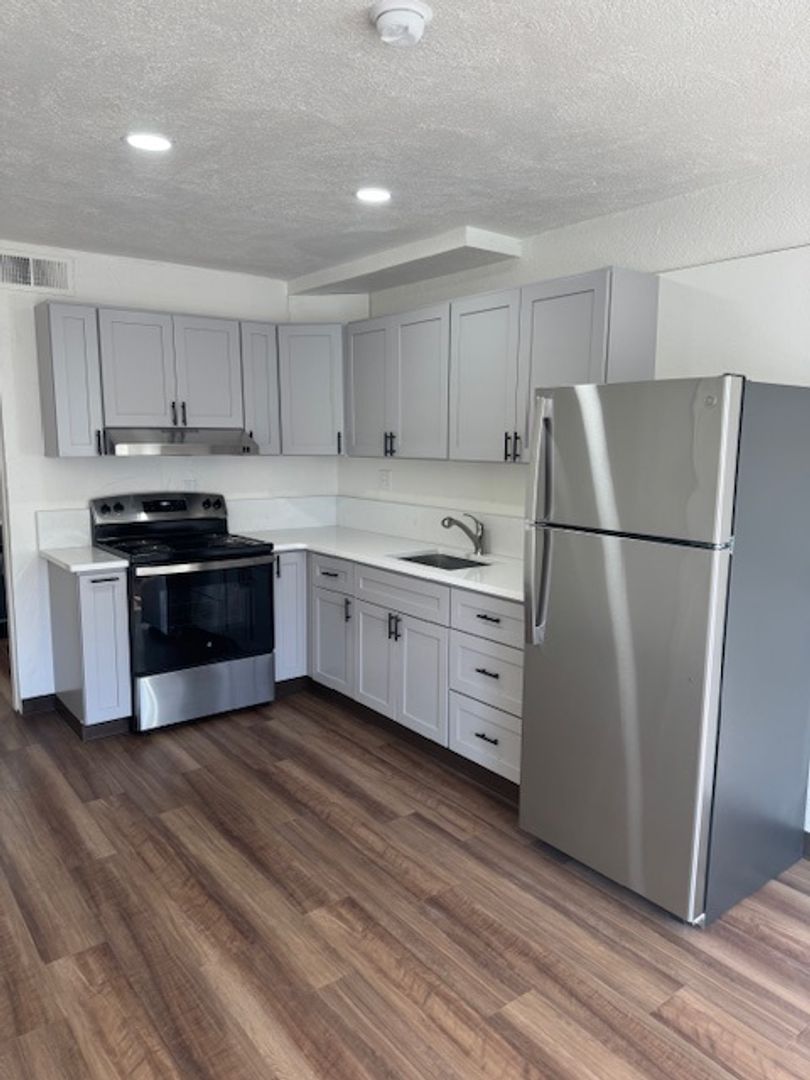 Downtown Redding studio with all Utilities paid. This 315 sq foot downstairs unit has luxury vinyl flooring throughout. The updated kitchen features stainless steel refrigerator and range, beautiful quartz countertops with grey cabinets. Modern bathroom vanity and fixtures. Wall HVAC with remote and ceiling fan. Updated window and blinds. Water, Garbage and Sewer paid for by owner (Wi-Fi not included). Off Street parking with one assigned spot. On site coin-op laundry facility. Conveniently located less than a mile from Caldwell Park and Shasta Regional Medical Center, near bike trails. No Pets.
