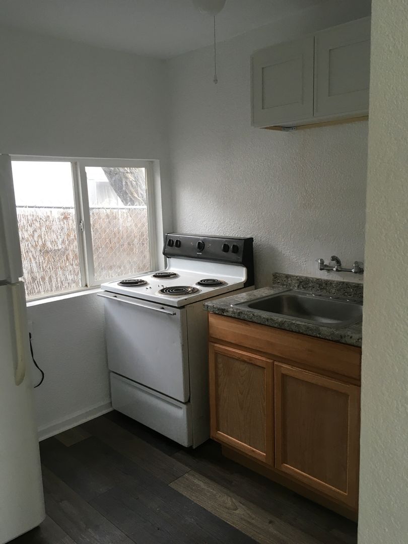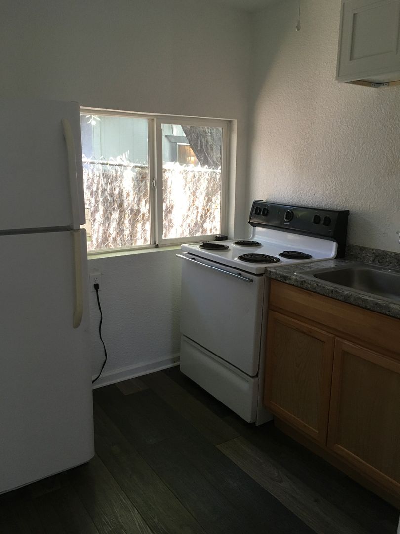 South Redding Cottage, 1 car carport, ALL utilities paid, kitchen includes and electric stove and a refrigerator, wall AC and space heater, LVP flooring throughout. 6 Month Lease.