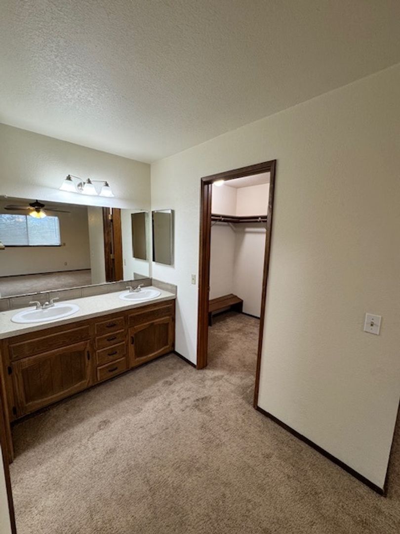 West Redding Home, large kitchen with lots of cabinets, a family room with a fireplace and a separate living room, a large deck with fenced back yard, and central heat & air. Kitchen equipped with electric stove top, wall oven, dishwasher and refrigerator (no warranty). One dog is considered with additional $25 monthly pet rent.