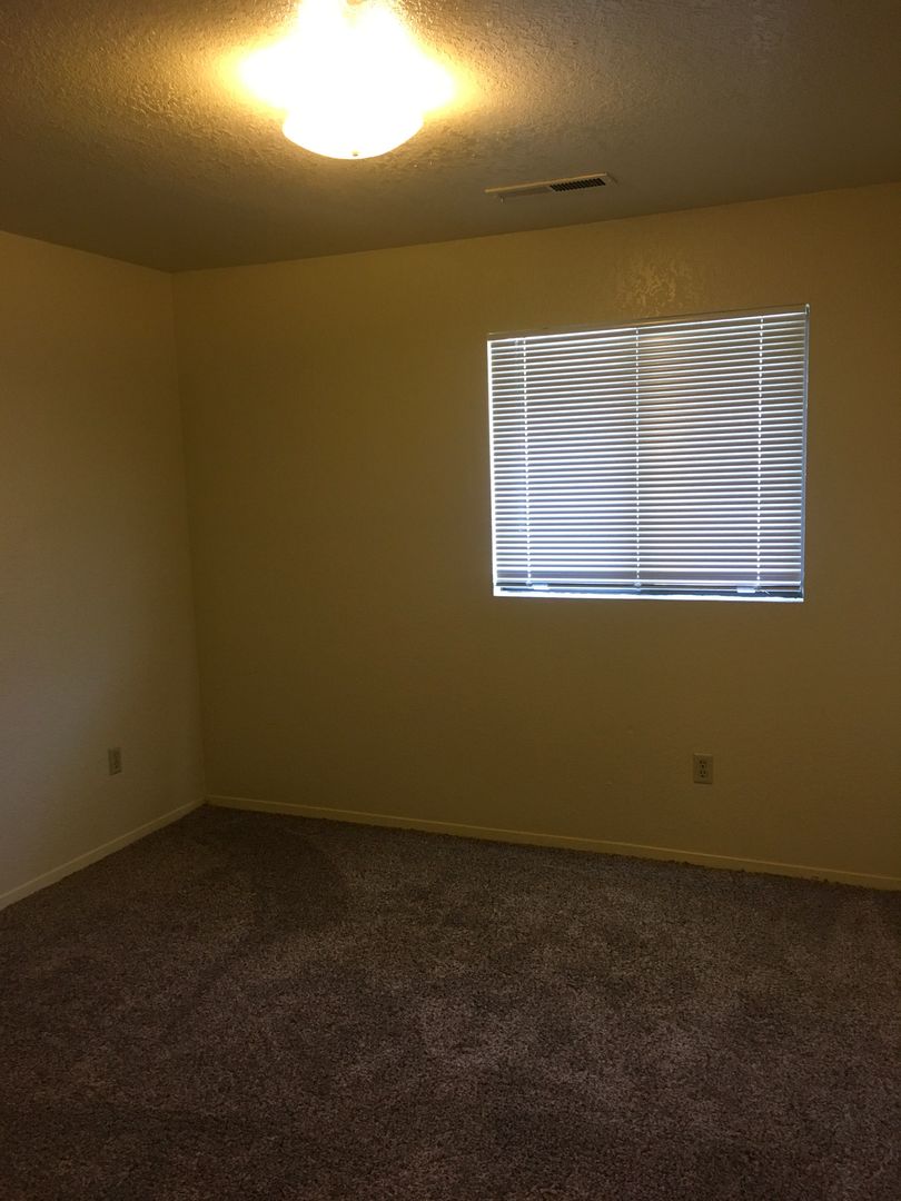 2 bedroom Town Home, with 2 car garage and 1 additional assigned parking space. Kitchen equipped with refrigerator, electric stove, and dishwasher. This unit has a fenced front patio, laundry hookups and Central Heat and Air. No pets. 6 Month Lease.