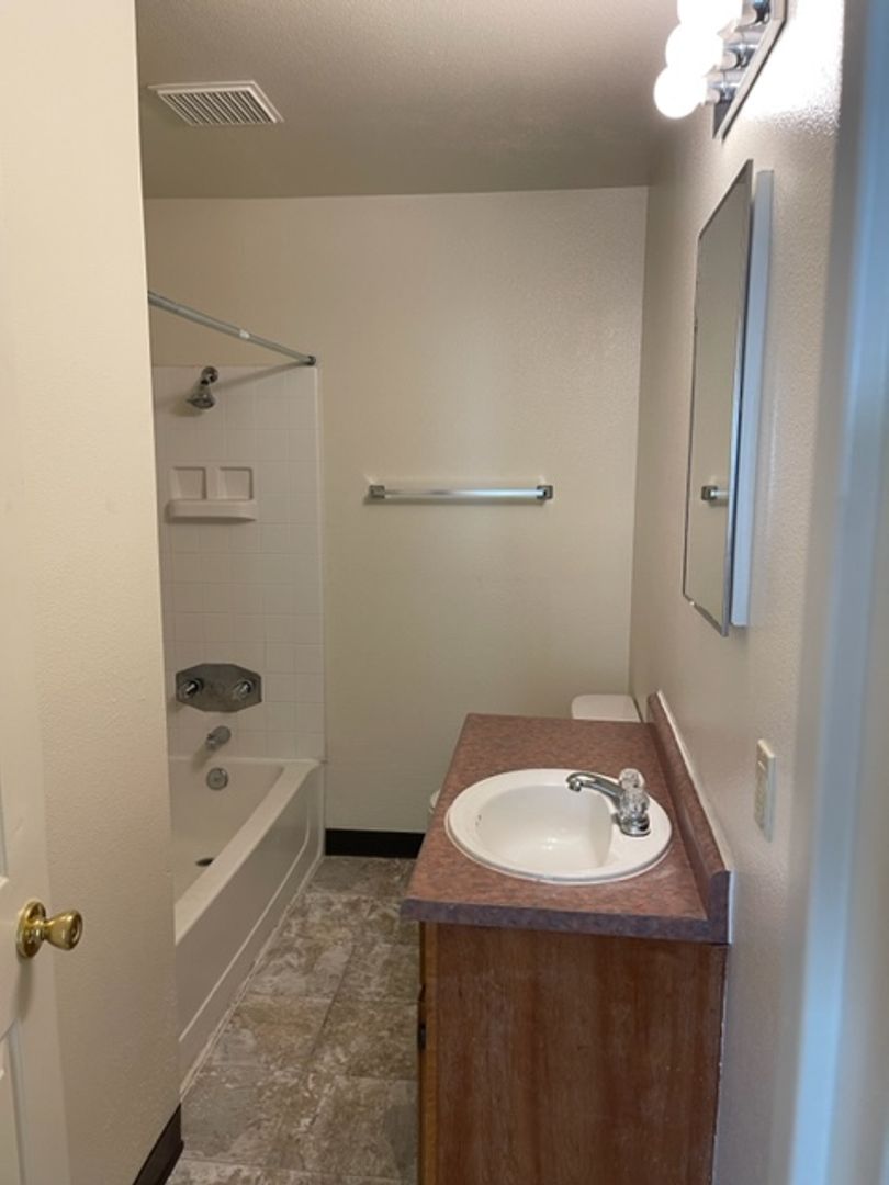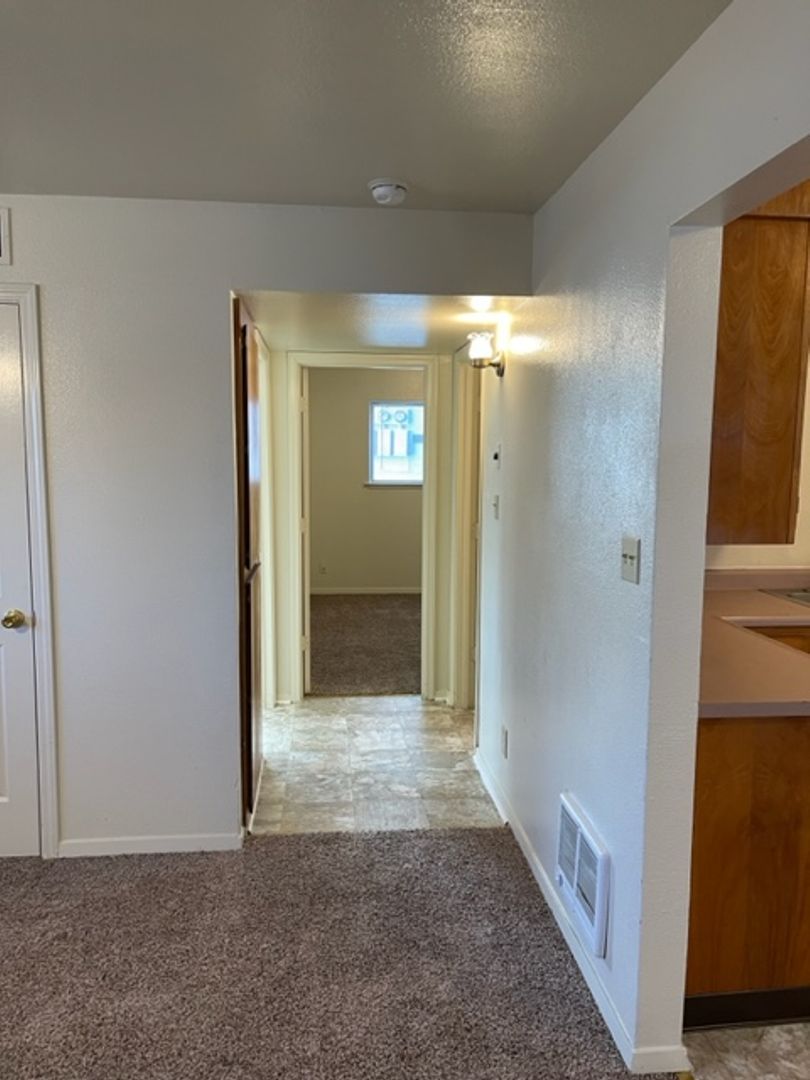 Magnolia Neighborhood, Downstairs 2 bedroom apartment with 1 bathroom and 1 assigned parking space. No Pets. Refrigerator, Electric Stove, Electric wall heaters, Swamp Cooler. Water & Garbage included. On site Laundry Room.
