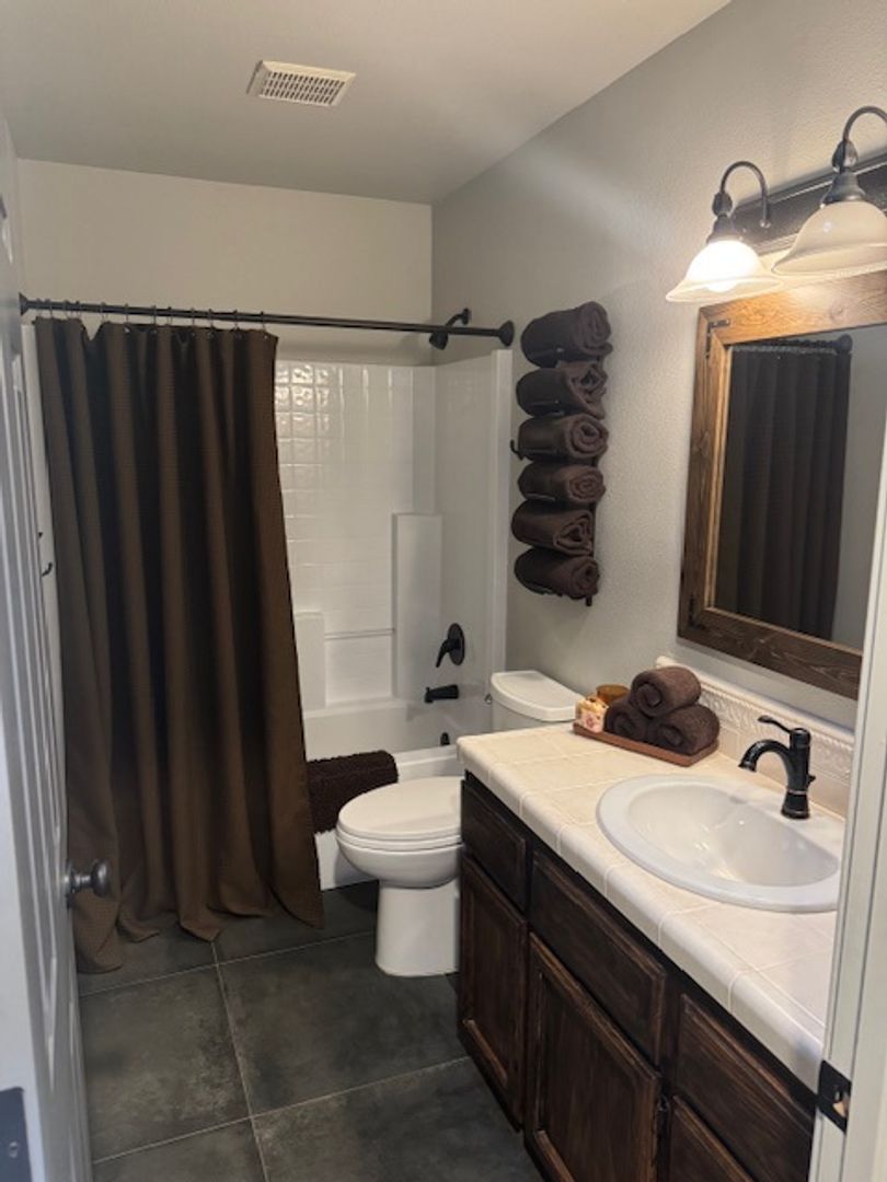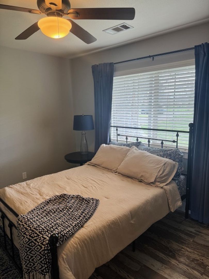 • Second bedroom includes a bed, wall-mounted TV, and optional bed and/or dresser.
