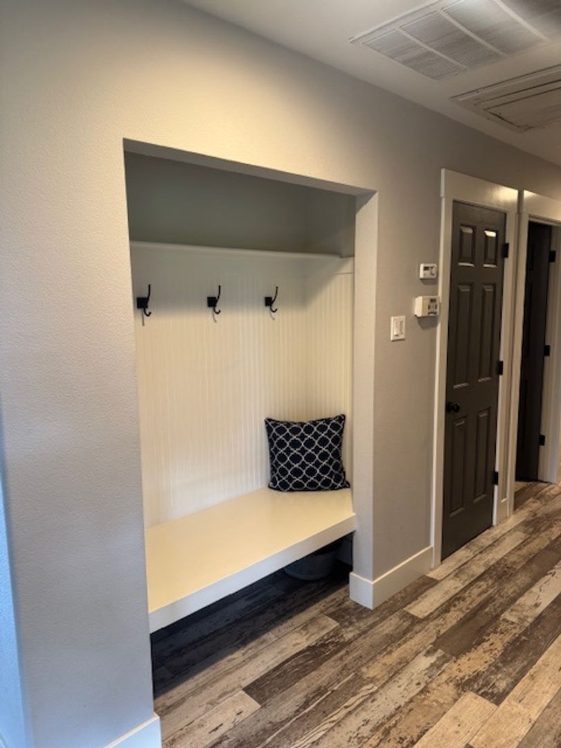 Additional features include a converted coat closet in the hallway that functions as a convenient bench closet for storage and seating.