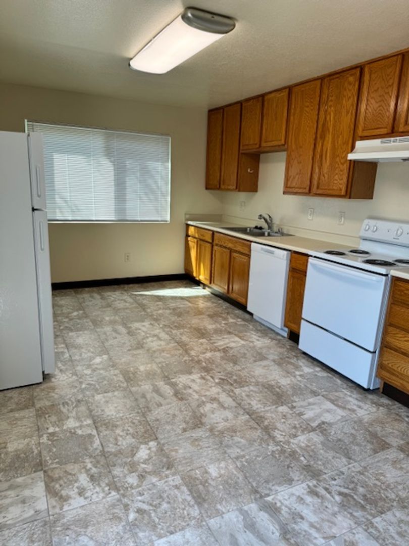Spacious upstairs 2-bedroom apartment located downtown near Mercy Medical Center. The kitchen comes fully equipped with an electric stove, dishwasher, and refrigerator. Enjoy the convenience of in-home laundry hookups only. The unit features an electric wall heater and wall-mounted air conditioner. 6 month lease.