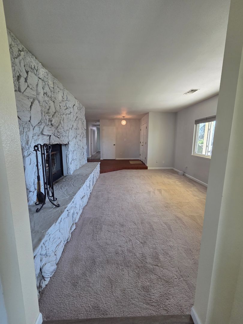Designed for both comfort and entertaining, the home features a unique built-in fireplace with dual access between the living room and family room—creating a warm, inviting atmosphere in both spaces.