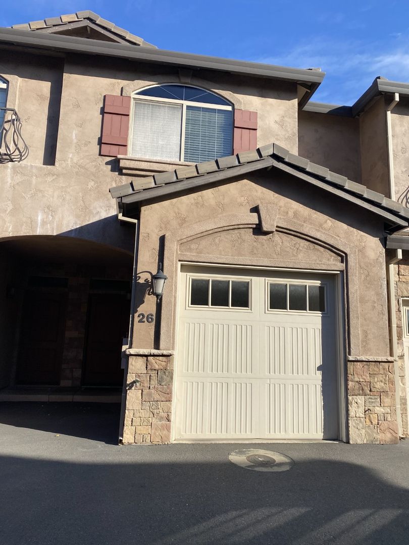2 Bedroom 2.5 Bathroom 1331 sqft. with private entry, 1 car garage with additional reserved space and deck off living room. Conveniently located near shopping and dining. Plush landscaping featuring a seasonal pool. Kitchens include granite counters with breakfast bar, complete stainless steel appliance package, refrigerator with ice maker, dishwasher, microwave, gas range and large pantry. Spacious primary bedroom with large closet. Washer and Dryer included. 1 year lease, Renters Insurance Required. Pets considered with additional pet rent $25 each pet.