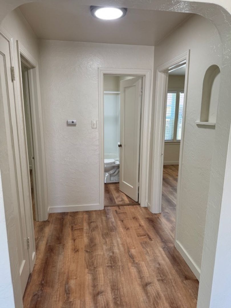 Downtown home with fenced back yard. One car garage with laundry hook ups. LVP throughout. Mini split for heating and cooling. The kitchen features an electric stove & refrigerator. 6-month lease. 1 Pet considered with an additional $25 pet rent.