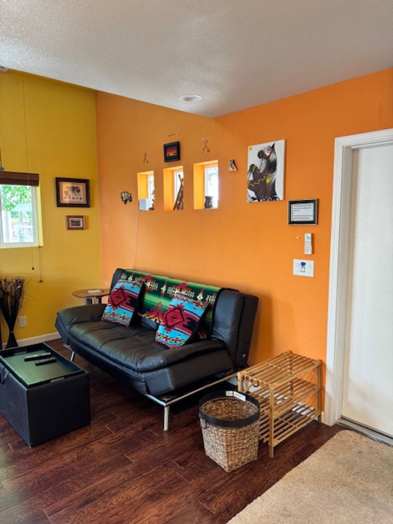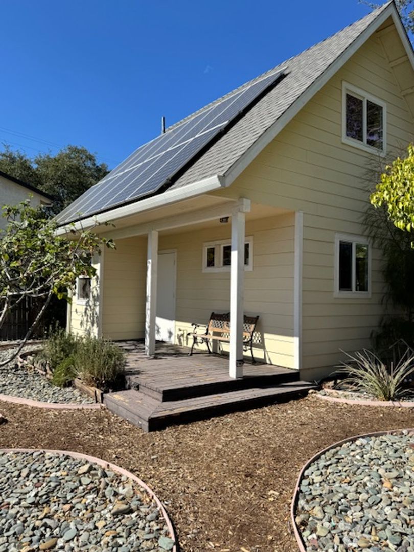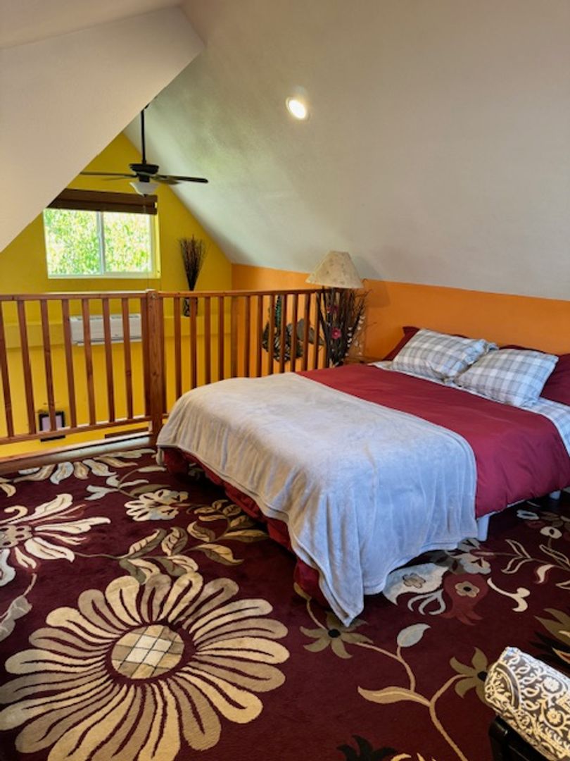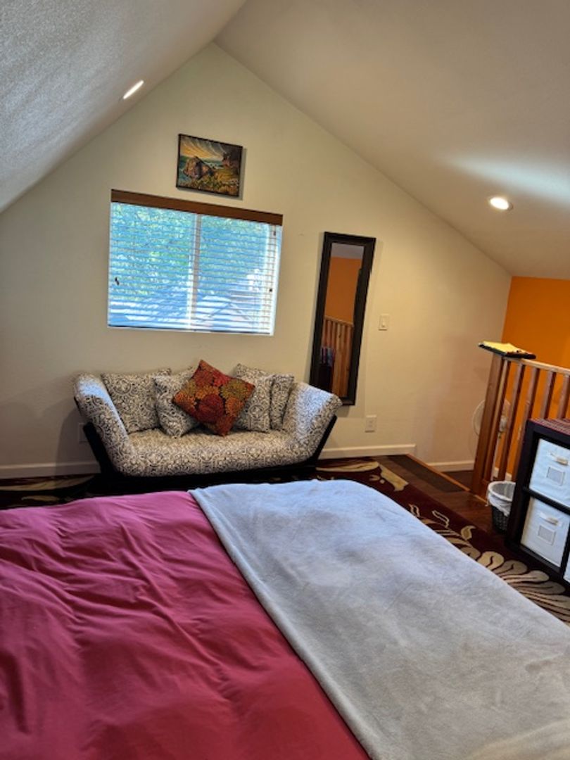 All utilities included + WIFI! Home comes with covered carport parking, covered front porch with bench, outdoor back patio with bistro table. Enjoy gardening in the shared garden. This unique loft style studio comes equipped with all the necessities. The kitchen is equipped with minifridge, microwave, toaster oven, hot plates, coffee maker and dishwasher, pots, pans, silverware and dishes. Downstairs there is a convertible sofa (folds into bed) and upstairs has a queen bed, linens provided. Mini split heating and cooling unit. Pets considered with additional deposit.
