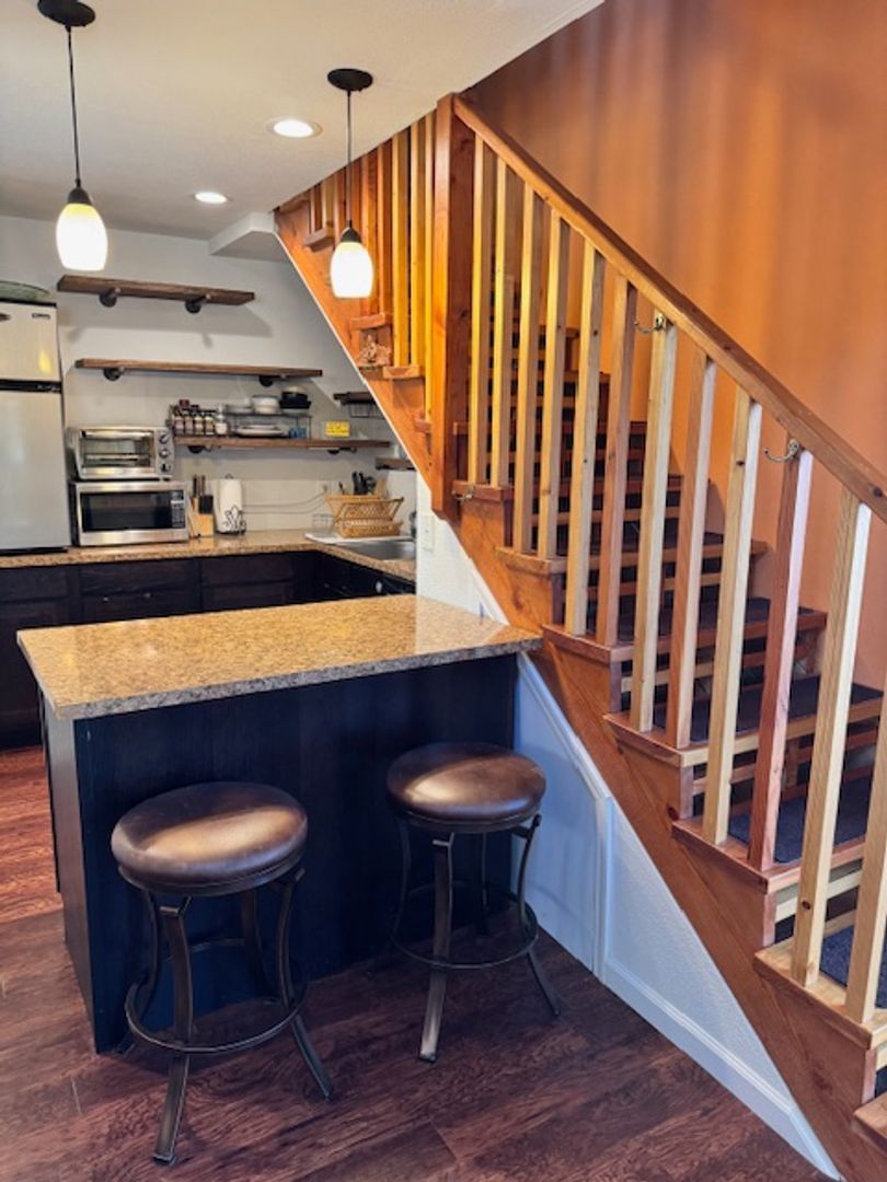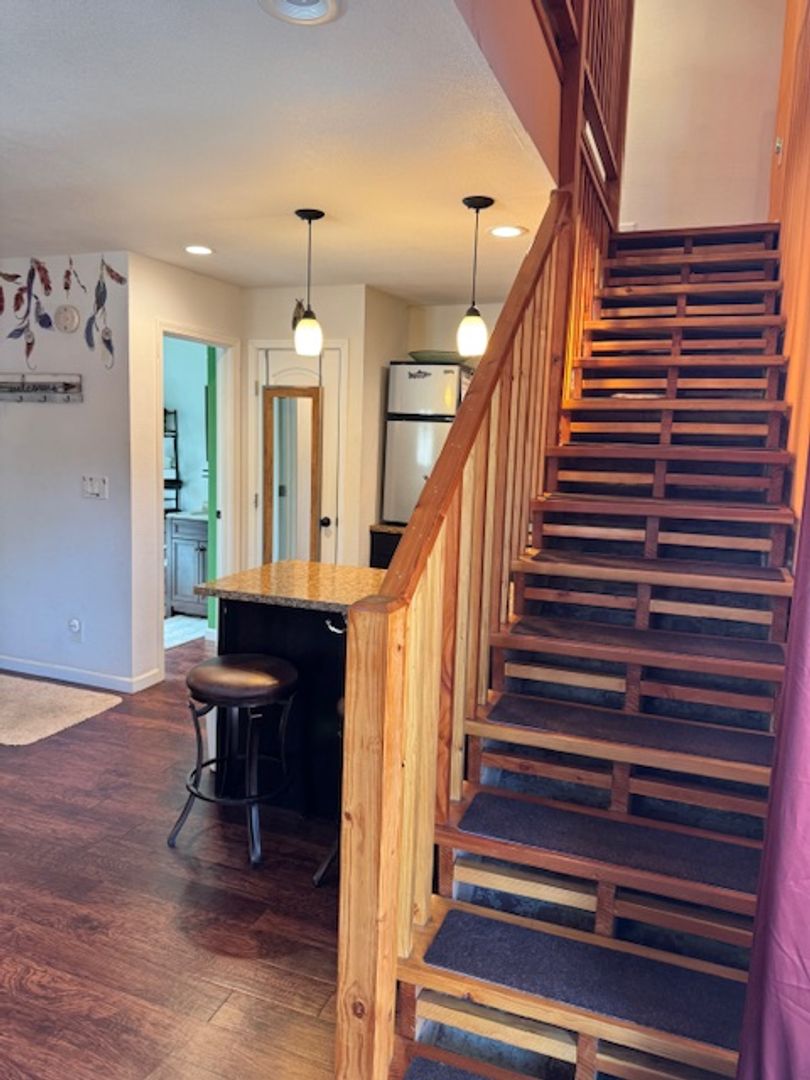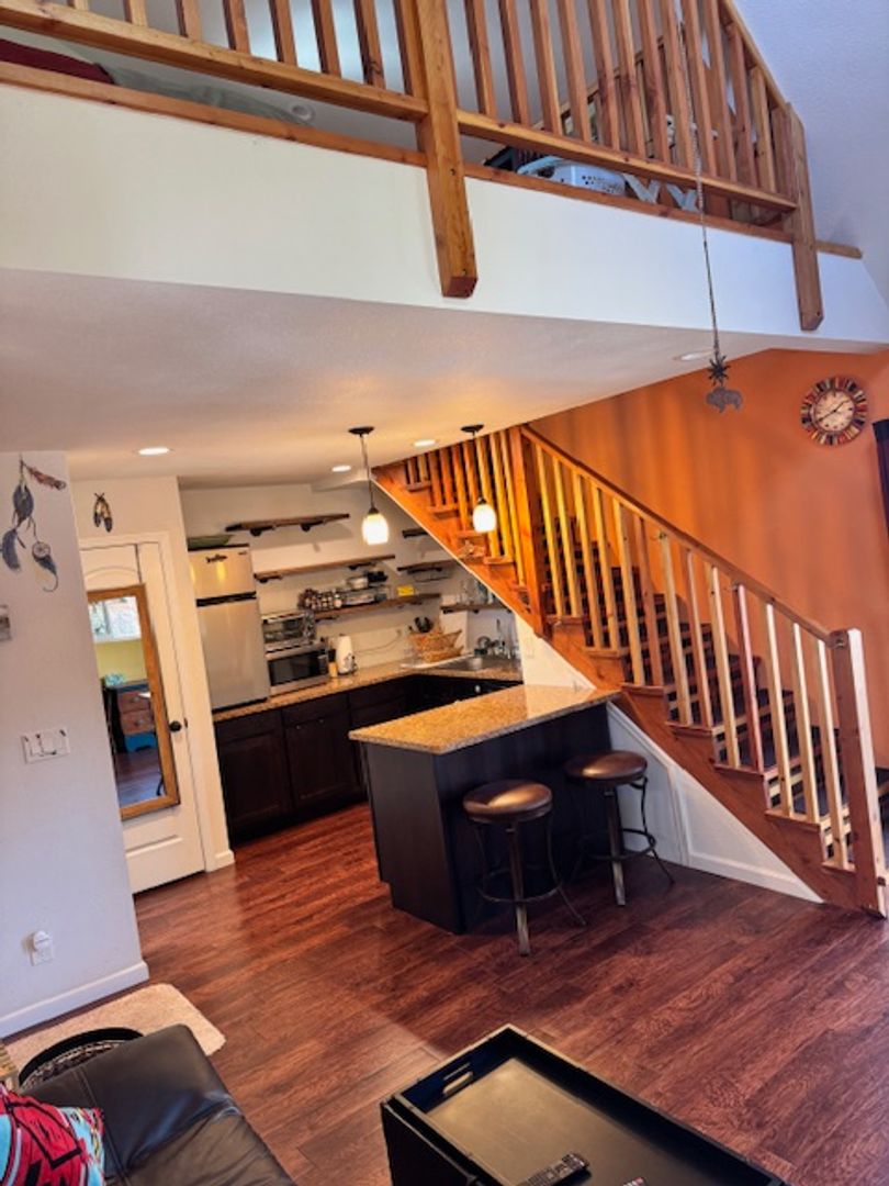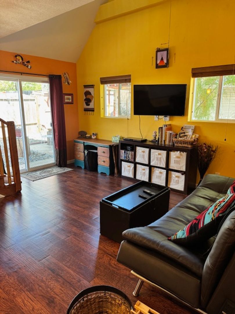 All utilities included + WIFI! Home comes with covered carport parking, covered front porch with bench, outdoor back patio with bistro table. Enjoy gardening in the shared garden. This unique loft style studio comes equipped with all the necessities. The kitchen is equipped with minifridge, microwave, toaster oven, hot plates, coffee maker and dishwasher, pots, pans, silverware and dishes. Downstairs there is a convertible sofa (folds into bed) and upstairs has a queen bed, linens provided. Mini split heating and cooling unit. Pets considered with additional deposit.