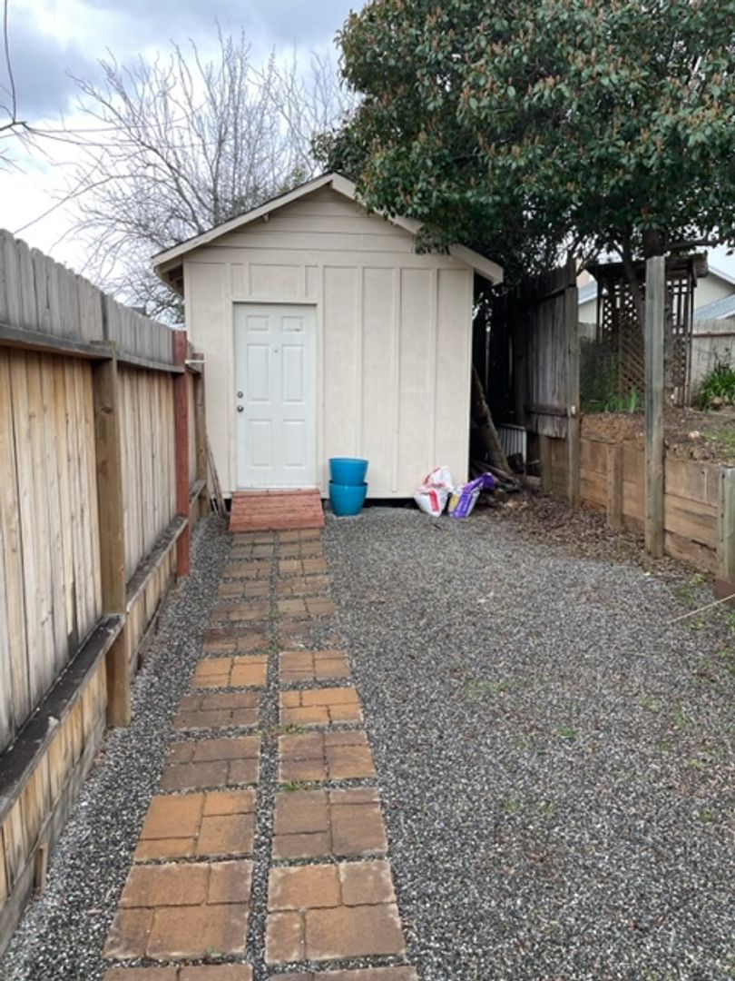 Open concept floorplan, LVP flooring in living area, vaulted ceilings, tile counter tops throughout. Beautifully landscaped fenced backyard with patio, tons of room for gardening with raised planter boxes. RV parking with hook ups and additional shed for storage. Kitchen equipped with stainless steel appliances, gas stove, refrigerator (no warranty), dishwasher and microwave. Washer and Dryer hook ups.